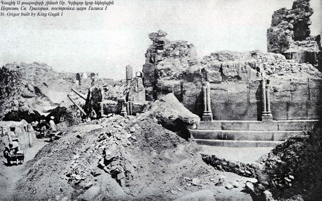Cette église a été construite au IXe siècle par l’architecte Tiridat, lors du règne de Gagik Ier roi d’Arménie (989-1020) membre de la famille des Bagratides. Elle est dédiée à saint-Grégoire-l’Illuminateur, évangélisateur de l’Arménie. Construite sur le modèle de l’église de Zvart’nots en république d’Arménie, c’est une rotonde à trois étages avec un espace intérieur quadrilobe surmonté d’un dôme. L’instabilité de sa structure circulaire nécessita plusieurs améliorations, en particulier la consolidation des colonnes centrales. Cependant malgré ces renforts, l’église s’est effondrée au début du XIIe siècle. Seules les fondations sont aujourd’hui apparentes ainsi que les murs dégagés lors de fouilles effectuées en 1906 par N. Marr. Ces excavations mirent à jour la célèbre statut du roi Gagik Ier portant la maquette de l’église aujourd’hui disparue, ainsi que des éléments de maçonnerie, comme de magnifiques chapiteaux.