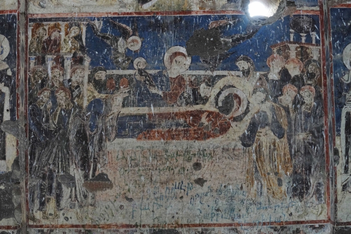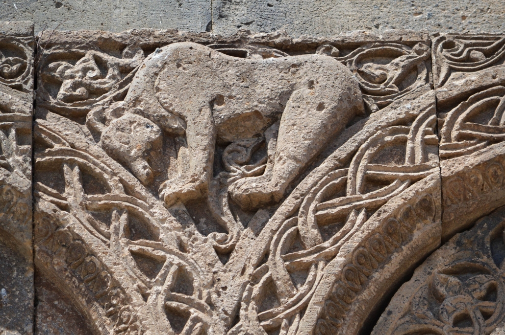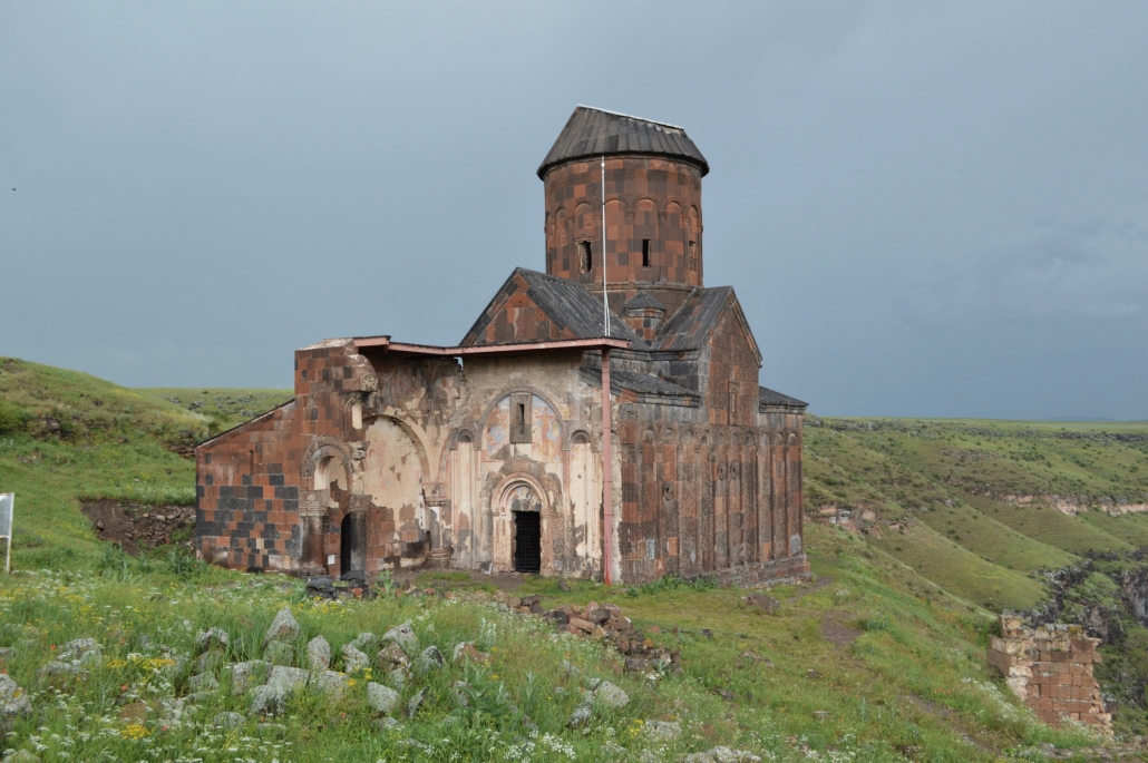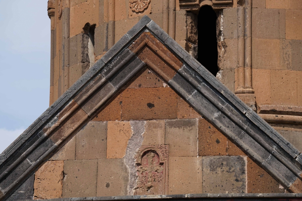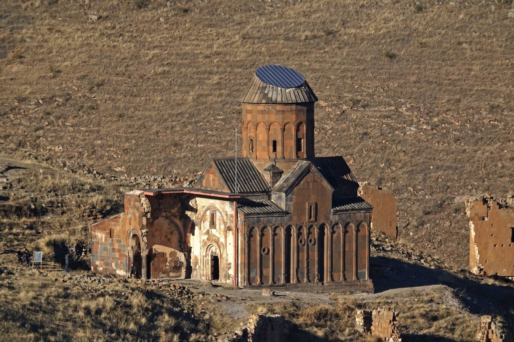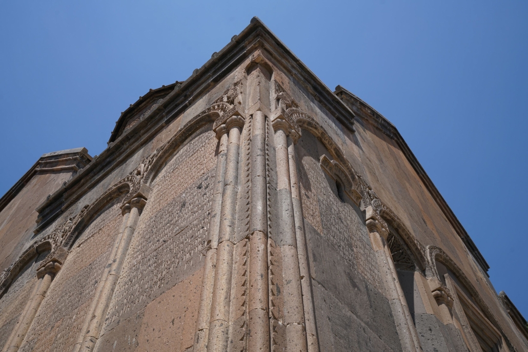 L’église Saint-Grégoire a été construite en 1215, financée par un riche marchand de la ville Tigran Honents dont elle porte le nom. Ce monument est unique par son décor sculpté qui orne l’ensemble de ses façades et son tambour. Les arcs des colonnettes impostes des façades, nord, sud et est, ainsi que le tambour sont sculptés d’entrelacs et d’animaux. De nombreuses inscriptions couvrent les façades est et sud. Il ne subsiste du narthex que le mur nord flanqué d’une pièce restaurée et un pilier à l’ouest. Les peintures qui ornent le narthex sont à ciel ouvert. L’intérieur de l’édifice est décoré par de remarquables peintures murales relativement bien conservées qui couvrent l’ensemble des murs. Elles représentent des épisodes relatant la christianisation de l’Arménie, notamment la vie et les supplices de Saint-Grégoire l’Illuminateur, évangélisateur de l’Arménie sous le règne de Tiridate. En 2009, la coupole et la couverture de l’église ont été restaurées afin d’éviter les infiltrations d’eau.