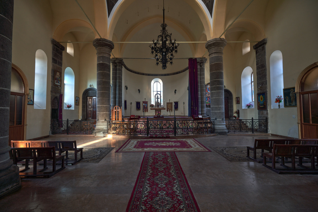 L’église du Saint-Signe est située dans le centre de Gyoumri, non loin des églises du Saint-Sauveur et de l’église Sainte-Mère-de-Dieu. C’est un monument imposant récemment restauré construit en pierres de couleur grise. L’église est précédée d’un haut narthex muni d’un clocheton. Les portes d’accès sont situées dans les murs nord, sud et ouest. Le tambour est percé de fenêtres hautes et étroites. La décoration sculptée de la porte orientale est composé d’un arc à triple moulure formé d’écailles, de petites feuilles stylisées et de perles qui repose sur une triple colonnette munie d’un chapiteau à boules. Ce portail est surmonté d’une large croix saillante à branches égales en forme de chaînette. A l’intérieur, le tambour et la coupole reposent sur quatre colonnes libres au moyen de pendentifs décorés de peintures qui représentent les quatre évangélistes et leurs symboles. Le sol est recouvert de marbre, les murs sont nus, deux chambres latérales sont accolées de part et d’autre de l’abside.